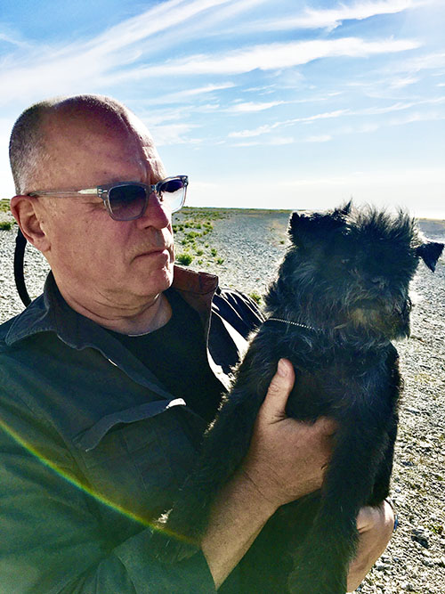 Graham and pet Affenpinscher (ape terrier) Iggy. Liv Lewis Elvander photo.
