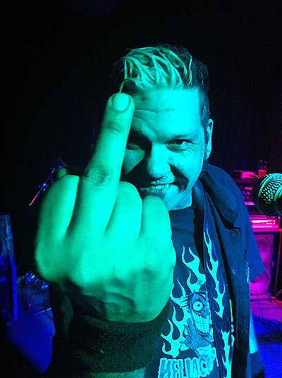 Poor promoter and Pro-Tools leader Pete ‘“The Stud” Howlett (pictured right) has had a cold. Last night he took over the door, and was the most unconvincing door bitch I’ve ever seen, not least because of the facial fuzz. So tonight he really has to push it out.